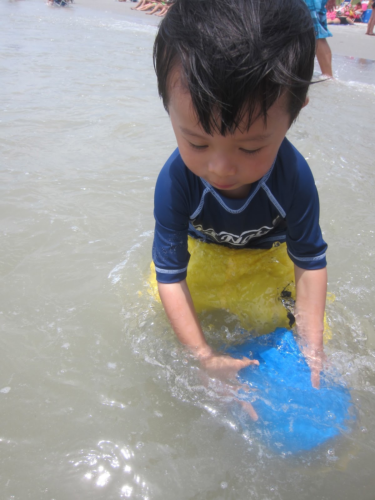 As Aiden gets older, he enjoys and appreciates the beach more. He still loves being in the water!